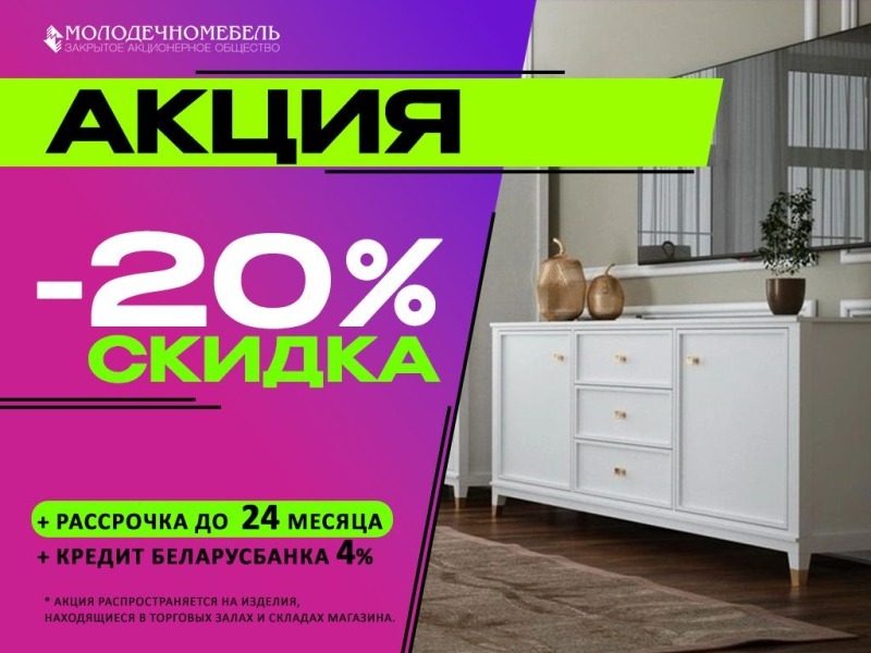 В Молодечномебель вы найдёте мягкую мебель по классным ценам! Для вашего удобства мы предлагаем рассрочку на 12 месяцев, чтобы вы могли приобрести мебель без необходимости сразу оплачивать полную стоимость. Также льготный кредит под 4% для наших клиентов, что делает покупку ещё более выгодной. Не упустите возможность обновить свой дом с выгодой для себя! Мы уверены, что вы останетесь довольны качеством и доступными ценами на нашу продукцию.